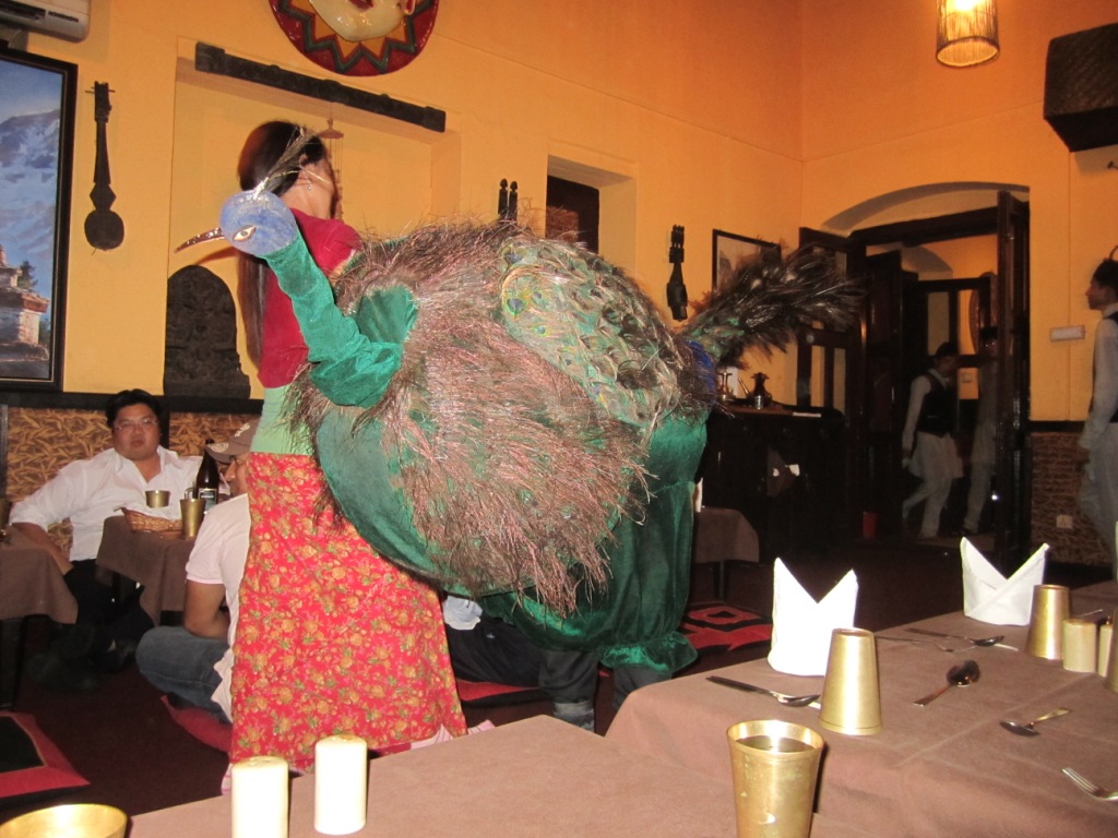 This week back in London my school had organised a leavers' reunion and, of course, I was missing it. I wasn't alone though because, as I mentioned in my previous post, in a massive coincidence two of my friends from school (Kim and Cini) happened to be in Kathmandu at the same time. We would have a reunion of our own! Some celebrating was therefore in order and we blew about a week's food budget by heading to a 'typical' (i.e. touristy) Newari restaurant in an old Rana palace for an 11-course banquet accompanied by musicians and dancers performing 'traditional' routines. Among the courses was wild boor which we all agreed was delicious. The night was incredibly cheesy, but the constant refills of rice whiskey plus several hours of catching-up meant that we had a great time. The highlight had to be the moment when the dancers ran up to our table and dragged us on stage to join them in some hilariously naff circle dancing.